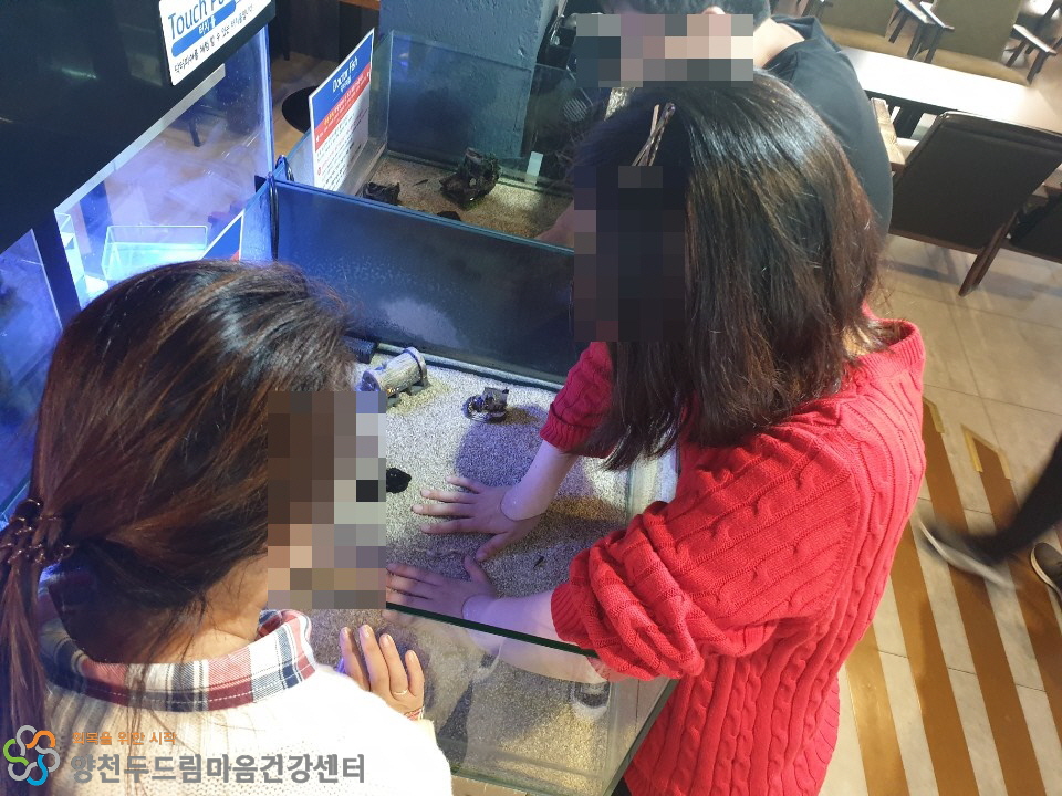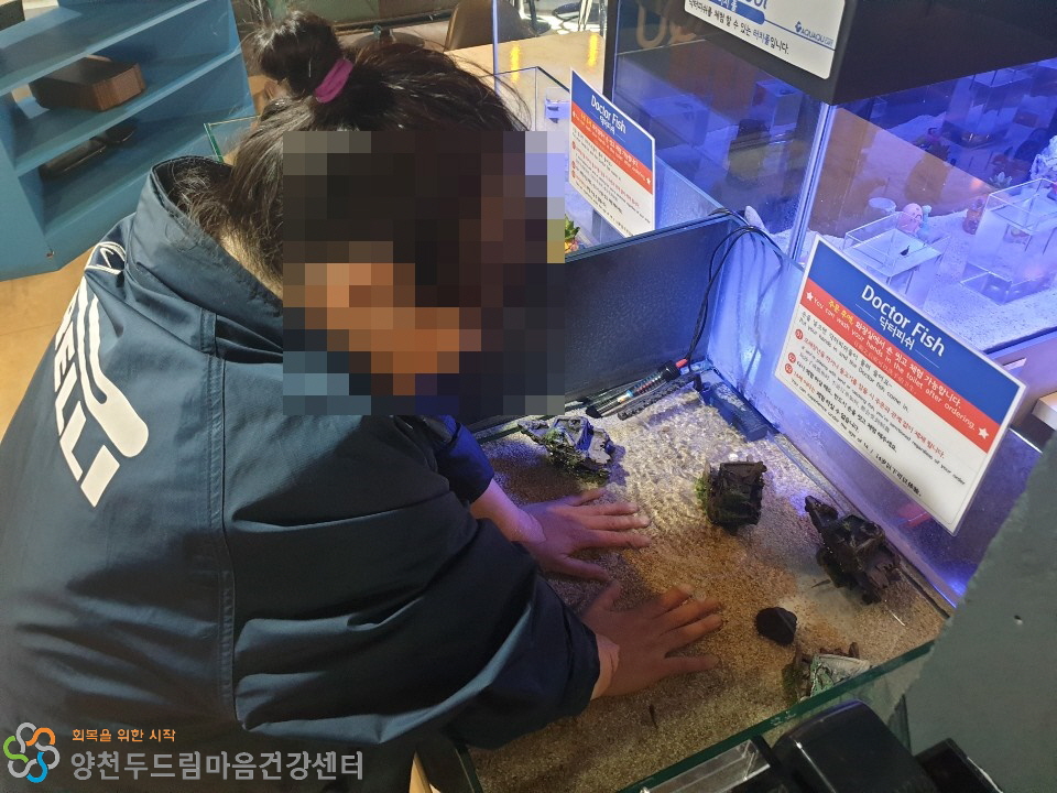 물고기가 손으로 다가와서 뭔가를 먹는 모습이 너무 귀엽고도 신기했습니다.